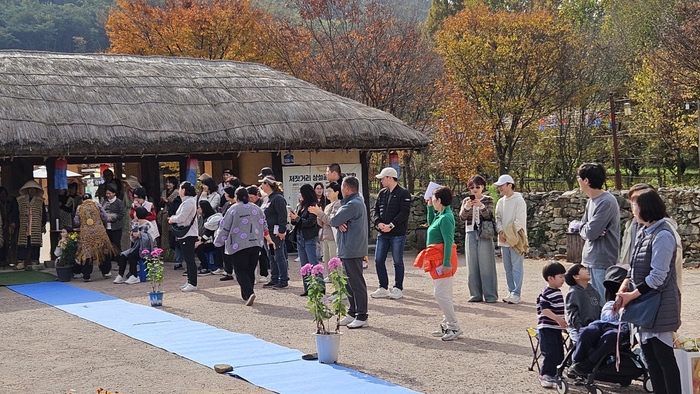 아산 “외암민속마을 저잣거리 입구광장에서 2024 제7회 짚풀 런웨이가 11월 10일11시30분에 성황리 진행됐다.